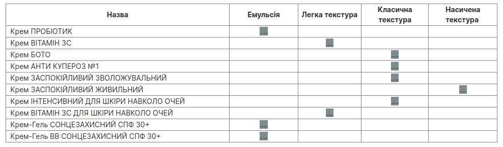 Класифікація кремів DeLav по текстурі