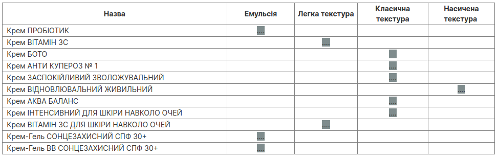 Класифікація кремів DeLav по текстурі